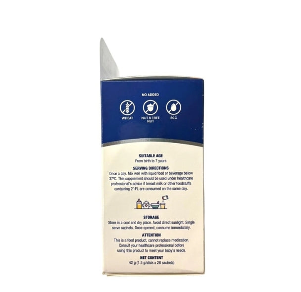 提升免疫力:HMO能有效抑制有害菌,平衡腸道微生態,培養良好免疫力 減低感染機會:HMO有助建立屏障,阻隔病菌 促進益生菌增長:HMO為益生菌提供養分,有助保存益生菌的活性,增加益生菌數目。 活性益生菌:每包添加不少於120億CFU的活性益生菌。 獨立包裝,毋須冷藏,方便使用。 無添加人工香料、人造色素及甜味劑。 原產地 法國 產品說明 革命性HMO 益生菌升級配方 每包添加不少於120億CFU的活性益生菌 HMO能有效抑制有害菌,平衡腸道微生態,培養良好免疫力 HMO為益生菌提供養分,有助保存益生菌的活性 使用方法 每天2條,早晚各1條。直接加入37°以下的流質食物或飲料中調勻。 如當天食用母乳或其他含有2’-FL 的食物,請勿與本產品同時食用。 Read more