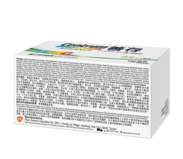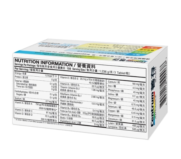 全面的多種維他命及礦物質配方,由A至Zinc〈鋅〉,有助維持身體精力及免疫力,新配方添加葉黃素及茄紅素更對眼睛及心臟有益,助您穩固好體質,挑戰亞健康! 全球銷量No.1的多種維他命品牌*,善存®成人配方是多種維他命及礦物質補充劑,提供完整均衡的營養素由A至Zinc 〈鋅〉,有助維持身體精力及免疫力。 精力:含維他命B雜及鐡質,有助提供身體所需能量 免疫功能:含抗氧化營養素,在正常免疫系統中起著重要的作用 健康皮膚:維他命A、C、β-胡蘿蔔素及生物素,幫助維持皮膚健康 抗氧化:含維他命C、E及銅質,有效的抗氧化劑,有助對抗自由基的破壞 生活忙碌,食無定時都有機會令要兼顧各方面的你滿足不到營養需要。加上飲食不均衡或營養不良可導致營養攝取不足,繼而身體容易出現多種健康問題,所以,攝取足夠營養素是打好健康基礎的第一步。 產品介紹: 善存®成人配方,提供完整均衡的營養素由A至Zinc 〈鋅〉,助你補充精力及提升免疫力。 每日一粒,均衡補足,失衡生活+! 產品好處: (1) 精力:含維他命B雜及鐡質,有助提供身體所需能量 (2) 免疫功能:含抗氧化營養素,在正常免疫系統中起著重要的作用 (3) 健康皮膚:維他命A、C、β-胡蘿蔔素及生物素,幫助維持皮膚健康 (4)... Read more