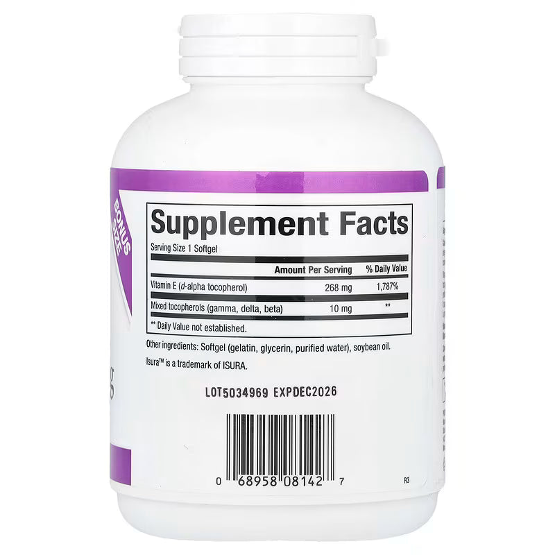 膳食補充劑 天然來源 保證全度和效力 維生素 E 268 毫克是一種優效、天然來源維生素 E,以 d-α-生育酚以及天然 γ-、δ- 和 β-生育酚形式存在。維生素 E 具有氧化功能,有助於保護細胞膜和抗氧。其支援心血管系統和全身健康。堅持每日補充維生素 E 對細胞健康生長和保持健康生活有重要作用。 Read more